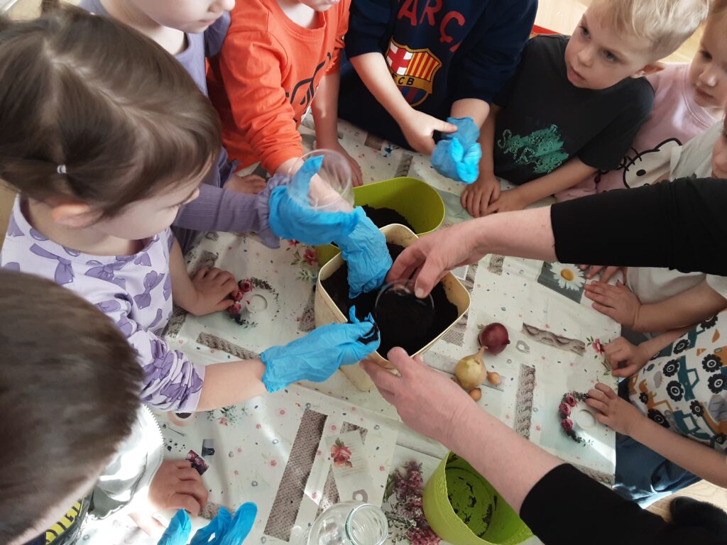 - poznanie różnych rodzajów cebul jadalnych i kwiatowych, doskonalenie umiejętności dokonywania analizy sylabowej, stwarzanie okazji do zacieśniania więzi w grupie