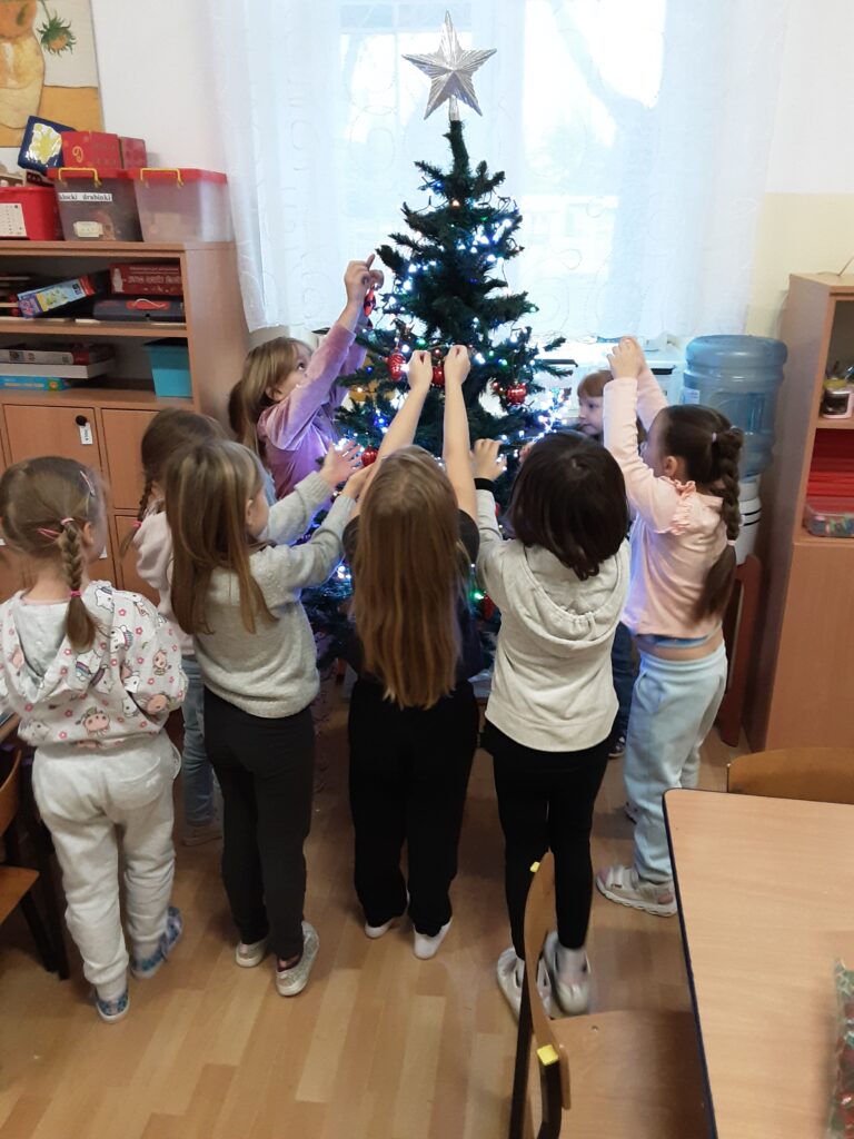 - utrwalanie umiejętności rozpoznawania i podawania nazw wybranych drzew iglastych, rozwijanie ciekawości i umiejętności wyciągania wniosków poprzez uczestniczenie w zabawach badawczych, ćwiczenie samodzielności i odpowiedzialności poznanie pastorałki, rozwijanie słuchu fonemowego i fonematycznego, doskonalenie umiejętności komunikacyjnych