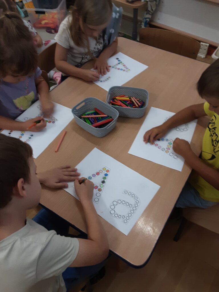 - zapoznanie z literą a, A, rozwijanie świadomości fonologicznej i słuchu fonemowego, kształtowanie sprawności manualnej,