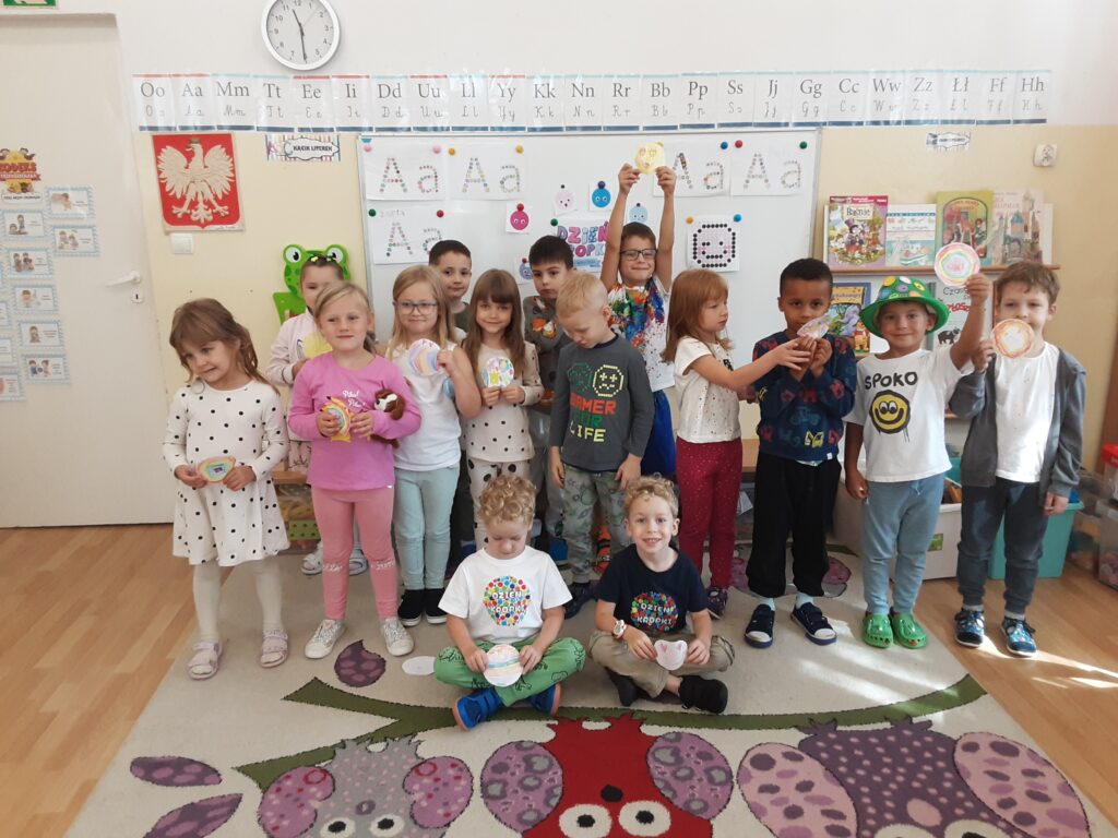 - poznanie genezy „Ogólnopolskiego Dnia Przedszkolaka”, tworzenie definicji słowa „mistrz”, rozwijanie umiejętności wyrażania się poprzez taniec i ruch przy muzyce, rozwijanie kreatywności, kształtowanie prawidłowej postawy wobec własnej i cudzej przegranej oraz wygranej