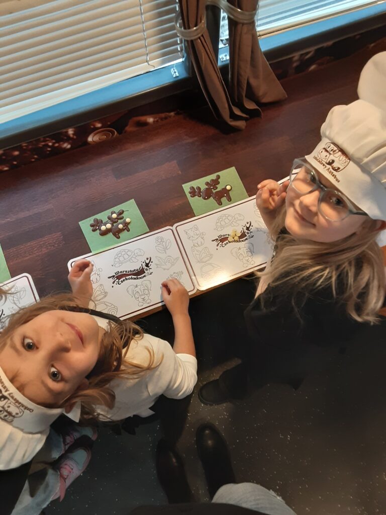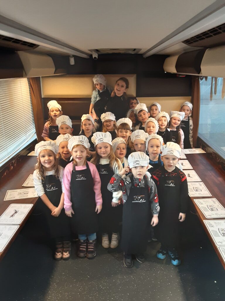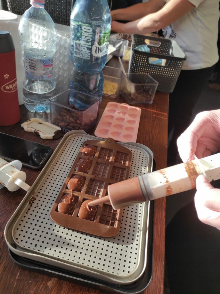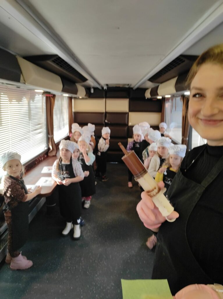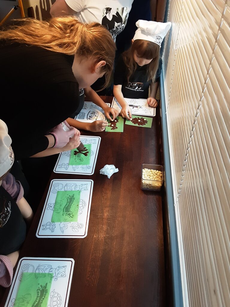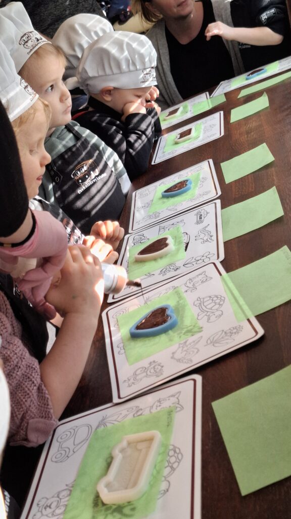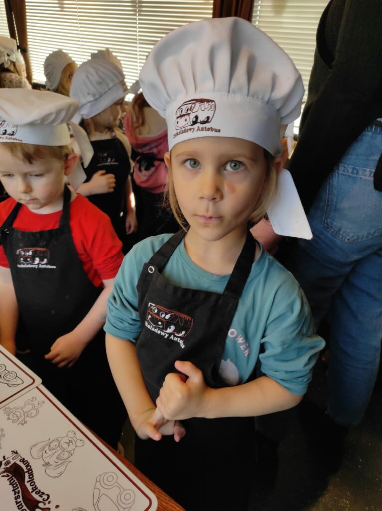 19 listopada 2025 r. do naszego przedszkola zawitał Czekoladowy Autobus, który objeżdżając różne zakątki Polski na chwilę zatrzymał się również przy Przedszkolu Samorządowym w Łomiankach. Dzieci mogły uczestniczyć w ciekawych warsztatach. Przedszkolaki dostały specjalne fartuszki oraz czapeczki „czekoladowych mistrzów” i mogły przystąpić do poznawania tego słodkiego świata. Najpierw poznały historię powstania czekolady oraz dowiedziały się, że ich ulubiony przysmak powstaje z drzewa kakaowca, którego owoc mogły obejrzeć. Nie obyło się również bez degustacji. Dzieci spróbowały różnych rodzajów czekolady, zarówno w formie płynnej jak i stałej. Mogły również własnoręcznie stworzyć wymarzoną tabliczkę czekolady według własnego pomysłu. Swoją czekoladową pracę zabrały do domu w pięknym zapakowanym pudełeczku. Na koniec, każdy mały uczestnik otrzymał dyplom mistrza czekolady.