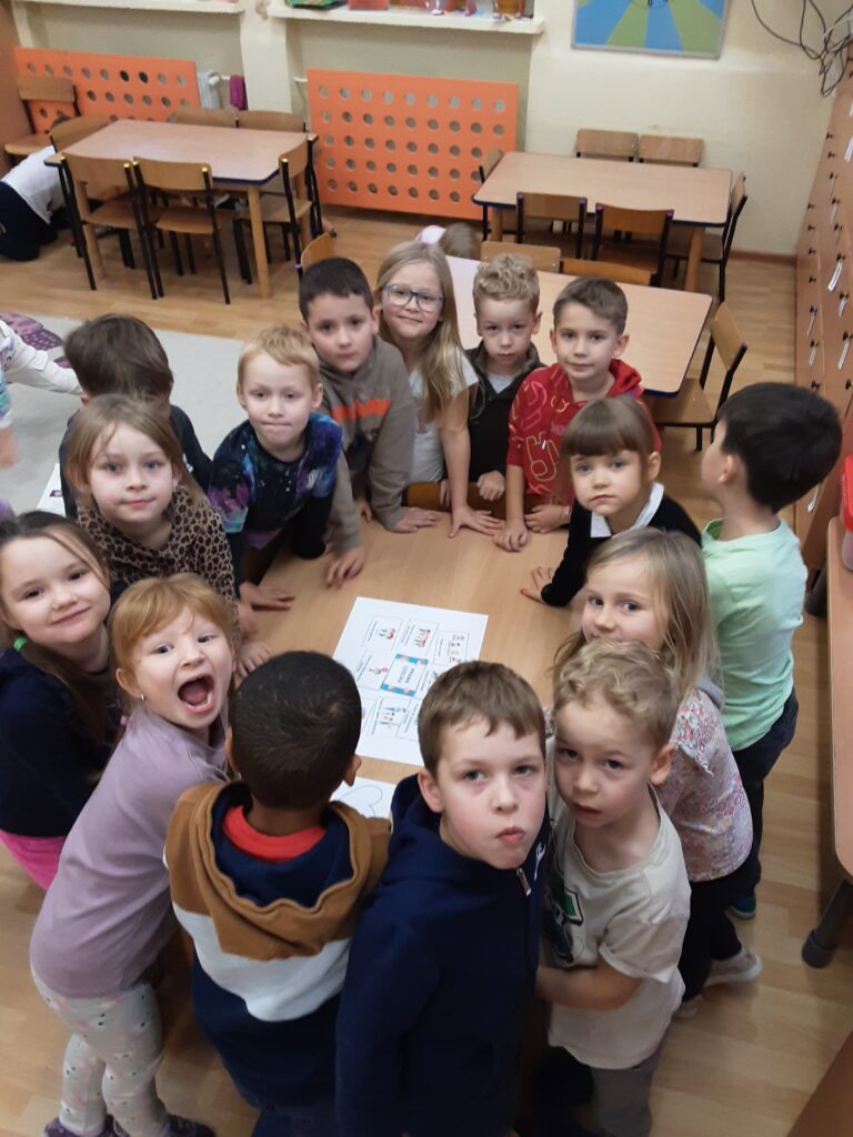W ten środowy poranek najstarsza grupa wzięła udział w kolejnej edycji Olimpiady Przedszkolaków.Po aktywnej rozgrzewce w rytmie muzyki przedszkolaki biegały, czołgały się, pokonywały przeszkody i rzucały do celu. Uczyły się też współpracy przenosząc drużynowo ogromne piłki. Emocjom i pozytywnej sportowej zabawie nie było końca.