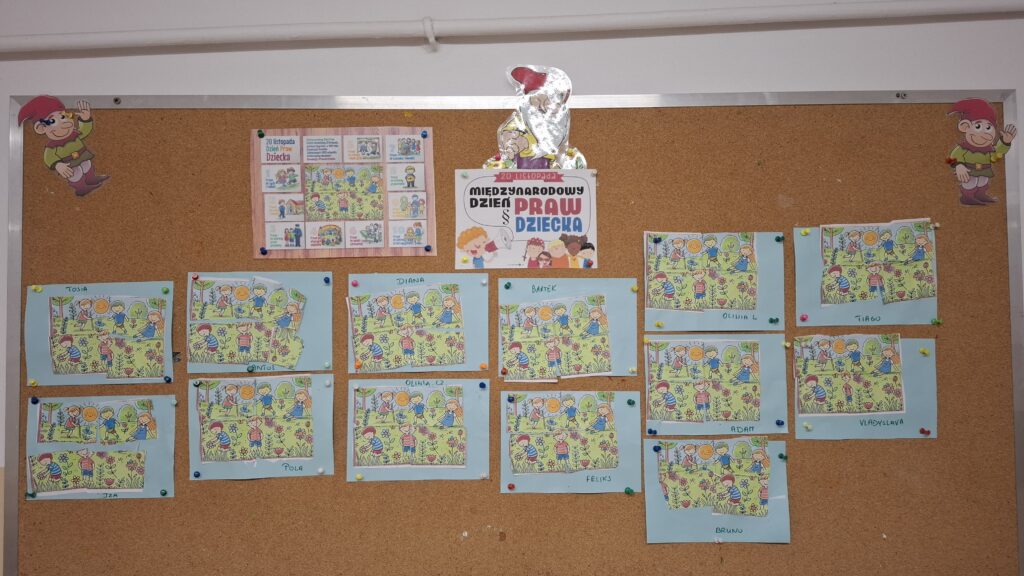 20 listopada przedszkolaki brały udział w obchodach Międzynarodowego Dnia Praw Dziecka organizowanych przez UNICEF Polska. Tego dnia dzieci przyszły ubrane na niebiesko. W każdej z grup zostały przeprowadzone zajęcia o prawach dziecka z wykorzystaniem ciekawych materiałów edukacyjnych. Na zajęciach dzieci zapoznawały się m.in z zapisami Konwencji o prawach dziecka, uświadamiały sobie kim jest „dziecko” i dlaczego wymaga szczególnego traktowania. Ponadto poznawały czym są prawa, a czym zachcianki.