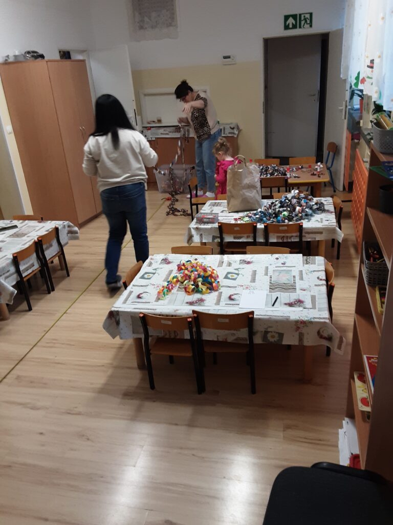 Tego dnia motywem przewodnim była oczywiście kropka zarówno na ubraniach, a także w różnych pracach plastycznych, zabawach dywanowych ( szukały ukrytych kropek w sali, dobierały je według wielkości, kolorów, szukały brakującej części kropki) , zabawach w ogrodzie przedszkolnym z użyciem obręczy „hula- hop”, piłek