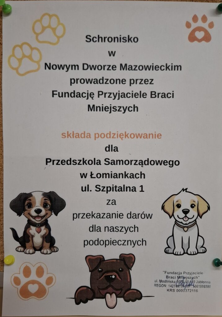 Nasze Przedszkole już po raz trzeci bierze udział w tej akcji. Tym razem organizujemy zbiórkę na rzecz Fundacji Przyjaciele Braci Mniejszych